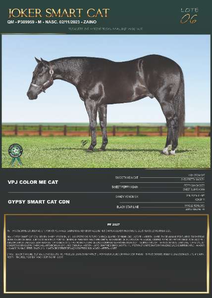 Pai – VPJ COLOR ME CAT, R$21.465 E 13 PONTOS PELA ANCA, CAMPEÃO DERBY GRUTA AZUL AB, RES CAMPEÃO DERBY ANCA AM ETC. SEUS FILHOS ESTREIAM EM 2025.
