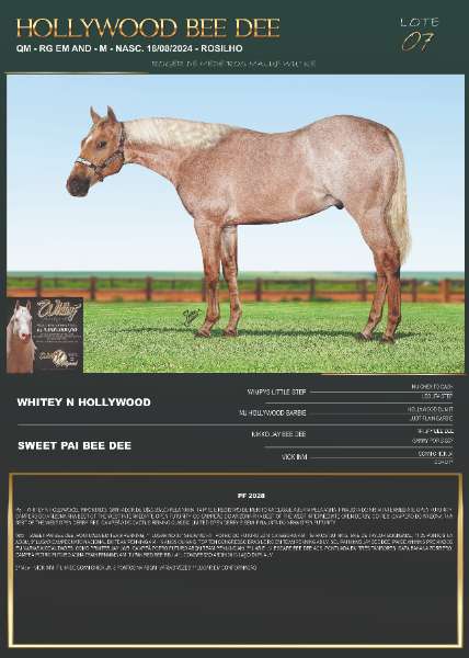 Pai – WHITEY N HOLLYWOOD, IMPORTADO. GANHADOR DE U$23.287,00 PELA NRHA. 14 PTS. E REGISTRO DE MÉRITO NA CLASSE ABERTA PELA AQHA. FINALISTA DO NRHA INTERMEDIATE OPEN FUTURITY, CAMPEÃO DO ARIZONA RHA BEST OF THE WEST INTERMEDIATE OPEN FUTURITY, CO-CAMPEÃO DO ARIZONA RHA BEST OF THE WEST INTERMEDIATE OPEN DERBY, CO-RES. CAMPEÃO DO ARIZONA RHA BEST OF THE WEST OPEN DERBY, RES. CAMPEÃO DO CACTUS REINING CLASSIC LIMITED OPEN DERBY E SEMI-FINALISTA DO NRHA OPEN FUTURITY.