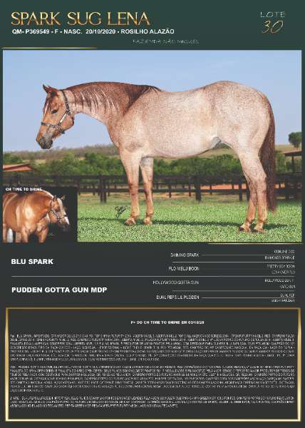 Mãe – PUDDEN GOTTA GUN MDP, SEU PAI HOLLYWOOD GOTTA GUN, IMPORTADO U$115.520 E 23 PONTOS NA AQHA EM RÉDEAS, RES CAMPEÃO DO CACTUS OPEN CLASSIC REINING, 4º LUGAR NO NRHA OPEN FUTURITY, FINALISTA DO NRHA OPEN DERBY E FINALISTA DO NRBC OPEN DERBY. SEUS FILHOS SOMAM 2.048,75 PONTOS EM 17 MODALIDADES E R$ 669.087,20 PELA ANCR, SENDO O TERCEIRO MAIOR PRODUTOR DE TODOS OS TEMPOS PELA ANCR, COM DESTAQUE PARA SNIPPER HOLLYGUN QR, R$155.450 PELA ANCR, CAMPEÃO POTRO DO FUTURO ANCR AB N4,N3,N2,N1 ETC. JUST IN HOLLYGUN QR, R$53.300, CAMPEÃO POTRO DO FUTURO ANCR 2019 AB N4. GSP WAS YOUR JOHNNY, R$36.481,39, CAMPEÃO POTRO DO FUTURO ANCR 2020 AB N4 ETC. HUNTER GOTTA GUN, 109,75 PONTOS, CAMPEÃO COPA DOS CAMPEÕES ABQM LAÇO CABEÇA AM MASTER, RES CAMPEÃO NACIONAL ABQM LAÇO CABEÇA AB LIGHT ETC. KATIE CAT DUN IT, 106,5 PONTOS, CAMPEÃ DERBY ABQM RANCH SORTING AB, RES CAMPEÃ NACIONAL ABQM RANCH SORTING AM MASTER ETC. GOTTA GUN PLAYER LEC, 90 PONTOS, CAMPEÃO SHOW AQHA POTRO DO FUTURO AB LAÇO PÉ, RES CAMPEÃO NACIONAL ABQM LAÇO EM DUPLA ETC. PRINCESS GOTTA FRN, 51,5 PONTOS ABQM, CAMPEÃ POTRO DO FUTURO ABQM LAÇO COMPRIDO AM ETC.